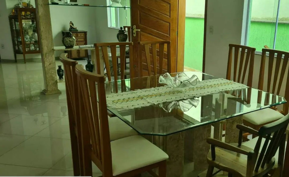 👉 Salão no subsolo (hoje tem uma mesa de madeira para reunir a família, um barzinho e 1 banheiro)