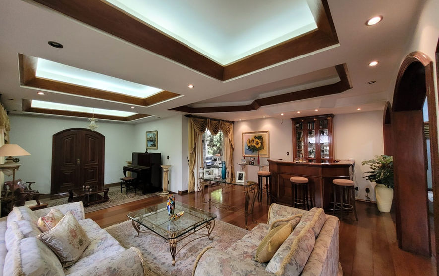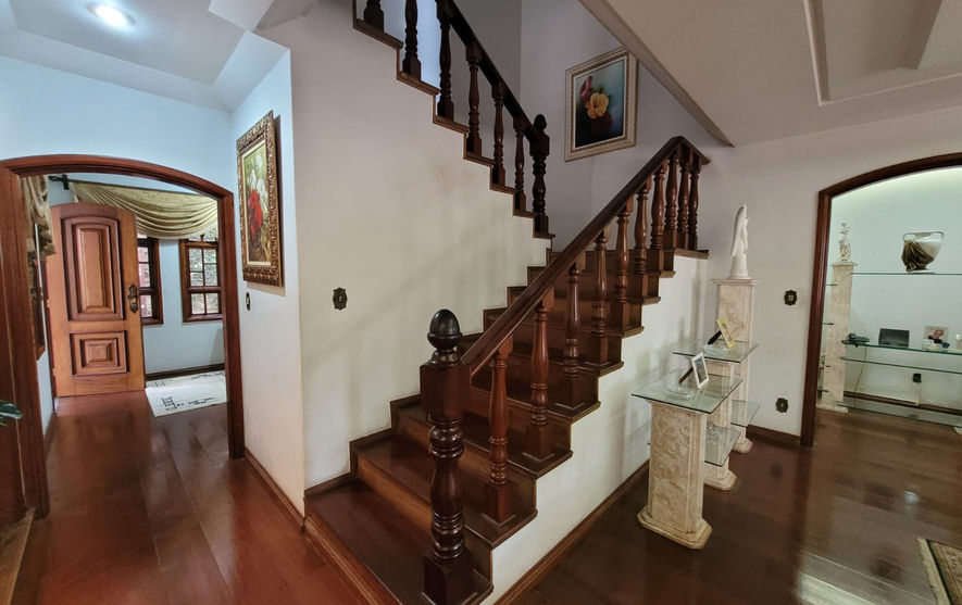 Primeiro pavimento :👉Casa possui três entradas: entrada através do lindo jardim que dá acesso sala da casa e lateral da área gourmet, outro através do portão da garagem para 4 carros que dá acesso ao hall de entrada da casa e a outra entrada através do portão de garagem que dá acesso a área gourmet. Essa área de estacionamento cabem aproximadamente 24 carros .👉 Amplo ambiente integrado com sala de piano, sala de estar com barzinho, sala de jantar com teto rebaixado e iluminação