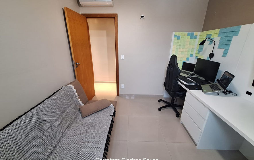 👉 3 quartos sendo 1 suíte com sacada e móveis planejados